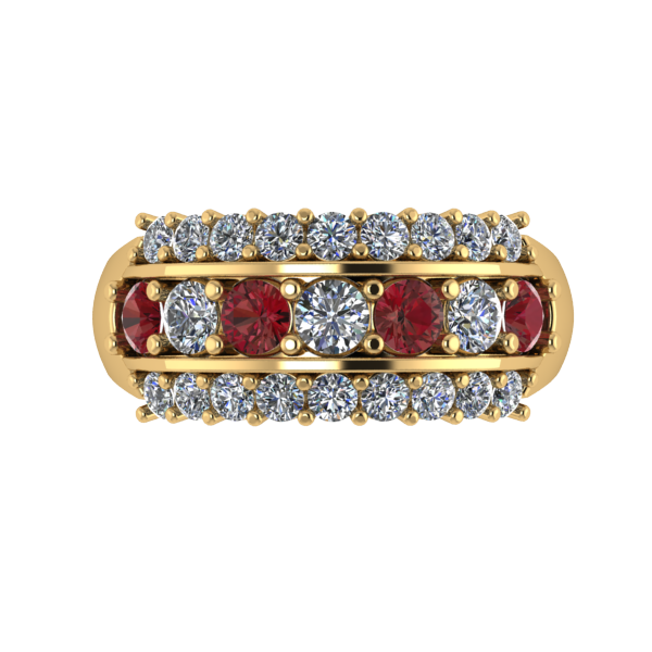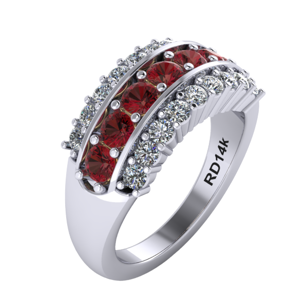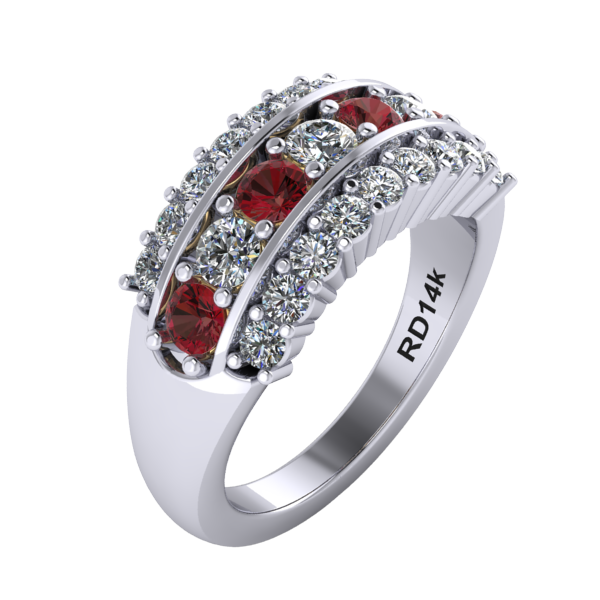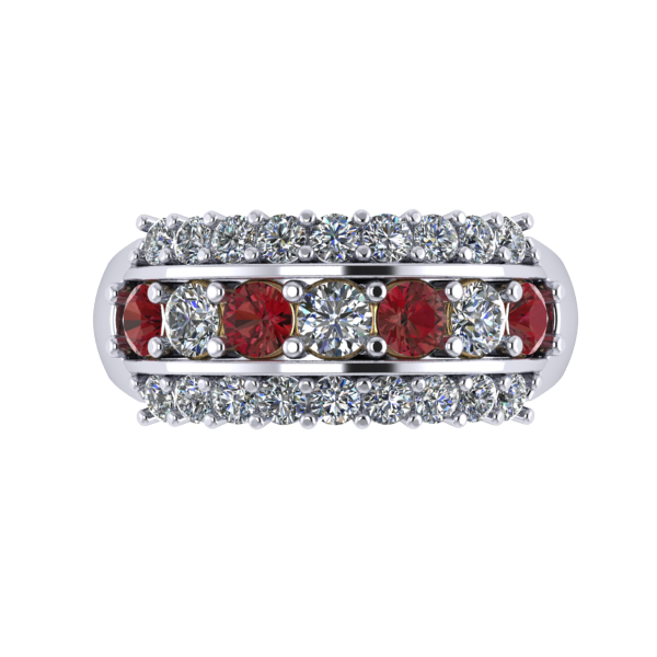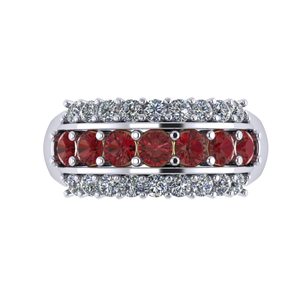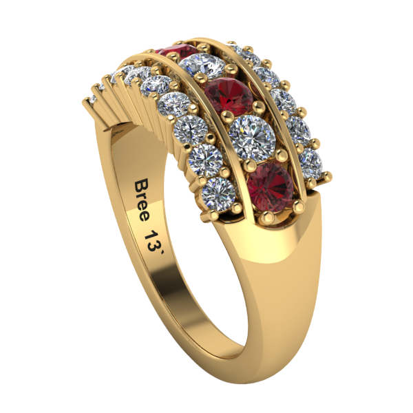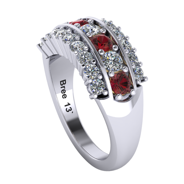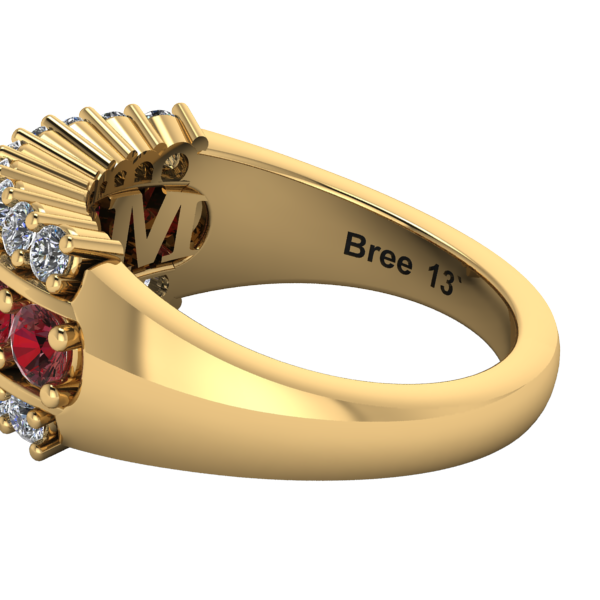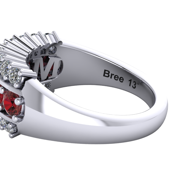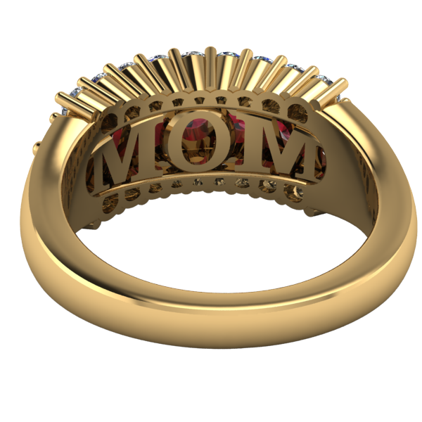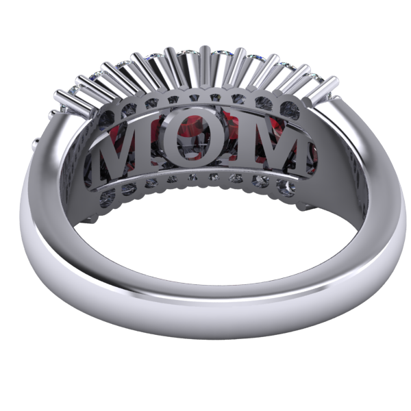 Choose from three stone configurations: the classic Maroon & White, the alternating Maroon and Diamond Center, or the All Diamond option for a brighter look. Inside the band, a subtle, stylized “MOM” detail is placed beneath the gemstones for a simple and meaningful design element.